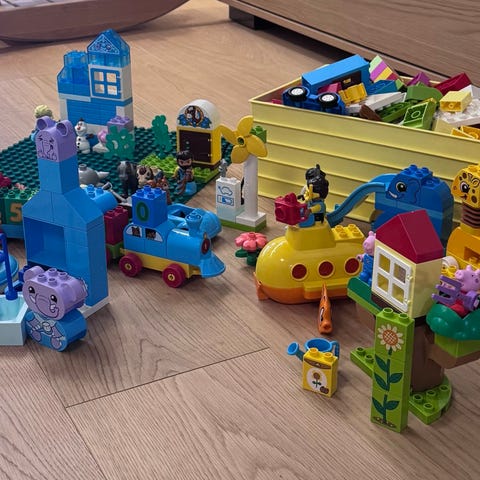 Lähes leikkimätön setti. Lapiossa jälkiä, muuten osat siistit.