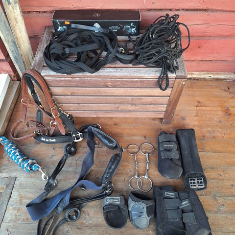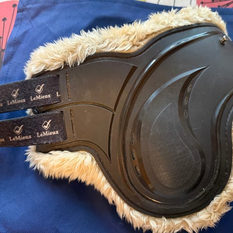 Pari kertaa käytetty, ei mahtunut meidän isolle 18" koulusatulalle(isot tuet) ja toisen puolen kuminauha karkasi kujaan. Fleece vuorella ja pitää kosteutta, satulavyölle taskut.
