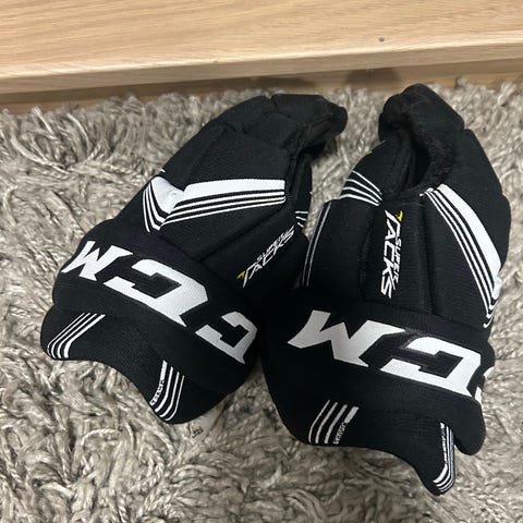CCM jääkiekko hanskat, värit punainen, sininen ja valkoinen. Hanskat on suunniteltu jääkiekon harrastamiseen ja tarjoavat suojaa sekä liikkuvuutta käsiin.