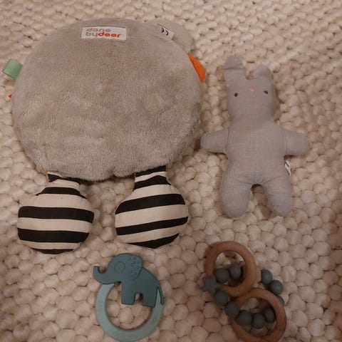 Done by Deer vauvan leluja mm.palikkatorni, pehmokirja, little dutch pehmokirja, vaunulelu ym