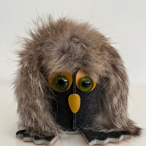 korkeus 20cm, turkista, nahkaa ja kangasta