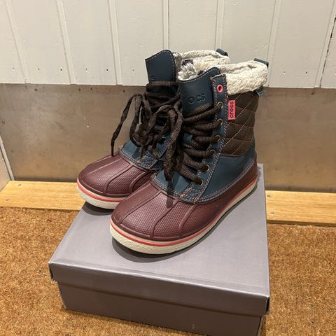 Crocs lasten saappaat, koko 39, unisex. Saappaissa on tummansininen väri ja ne on valmistettu kestävästä materiaalista. Sisäpuolella on lämmin vuori, joka sopii kylmiin olosuhteisiin. Saappaat soveltuvat lasten käyttöön ja tarjoavat suojaa sekä mukavuutta.