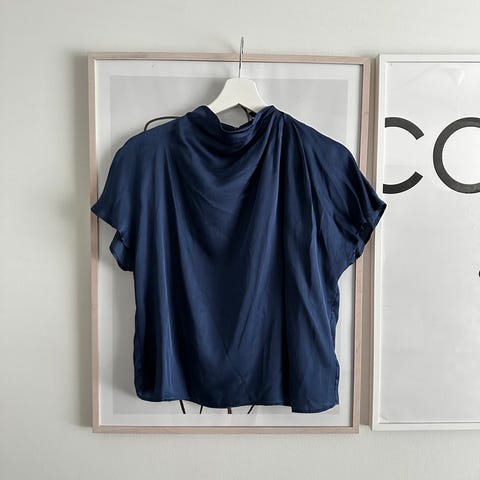 Myydään Zara pusero. Väri vaaleansininen, niskassa nappikiinnitys. Hyvässä kunnossa. Koko M