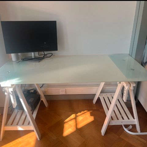 Myydään ehjä ja siistikuntoinen ikean lasipöytä valkoisilla MITTBACK pukkijaloilla. Pöydän korkeus säädettävissä.