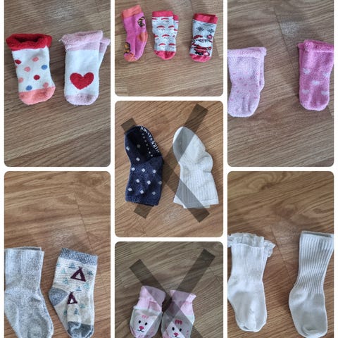 Vauvan paksut sukat 0-6kk+lelut+kuolalappu