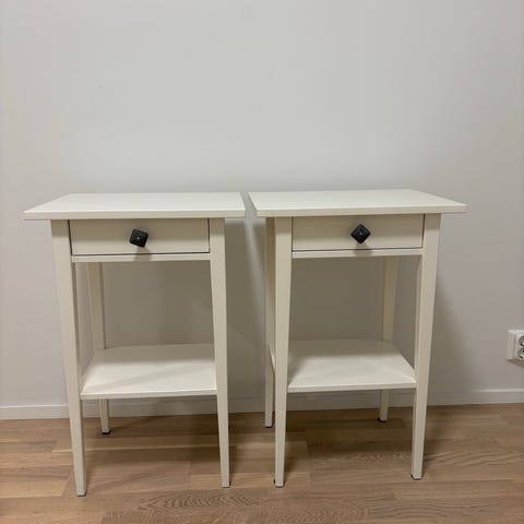 Ikea vikhammer yöpöytä. Vetolaatikko toimi niin kuin pitäisi. Käytönjälkiä löytyy, katso kuva.