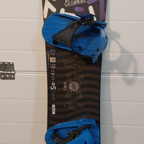 Elan Universe 115 cm lumilauta + Salomon Goodtime XS -siteet. Kevyt ja helppo lasten lumilautapaketti ensimmäisiin laskuihin.