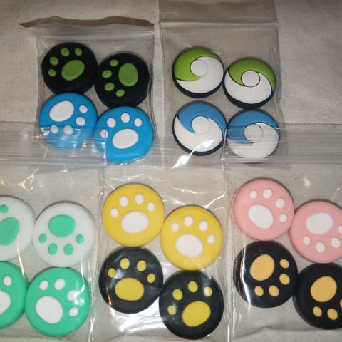 Yksi setti sisältää 4 kpl peukalogrippiä, sopivat Joycon ohjaimille.