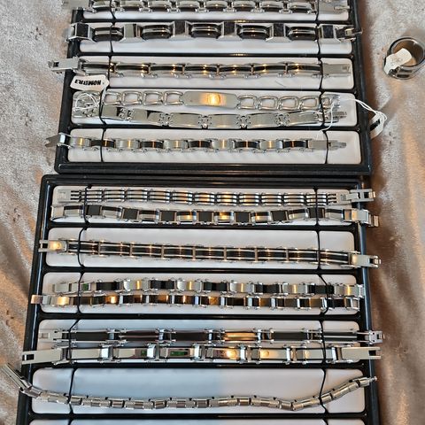 2 kpl hopea sormukset 20 ja 22 , kaulaketju 51 cm ja rannekoru panssariketju 21 cm