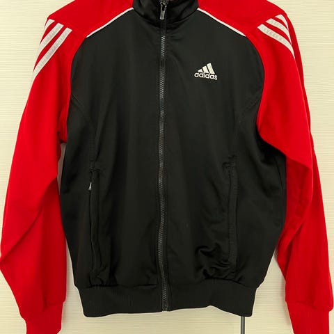 Adidas verkkatakki 164.Nukkaa paikoittain ja taskun kohdalla joku haalea jälki.Hihansuissa ehkä aavistus tummentumaa,kun tarkkaan katsoo.Ei huomaa käytössä.