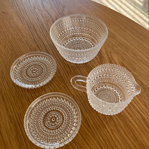 Myydään Oiva Toikan vuonna 1964 Nuutajärven lasille suunnitteleman Kastehelmi-sarjan vihreä kermakko. Tuotannossa vuosina 1964-78. Korkeus noin 5 cm. Erinomainen kunto.