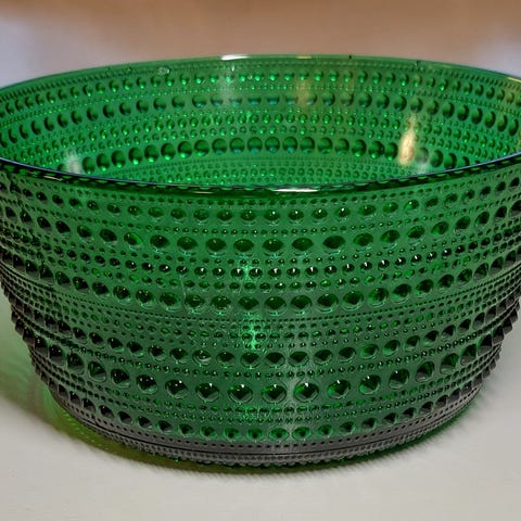 Nuutajärven lasi Oiva Toikka Kastehelmi iso tarjoilukulho vihreä 1970-luku