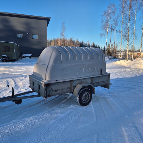 Sisämitta 400cm/170cm Hyväkuntoinen ei jarrullinen Telikärry. Kuomu on ehjä Ikh vaunu Ei sisällä alvia