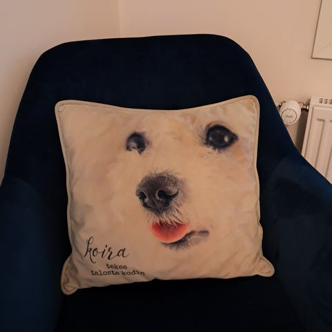 Aitoa pitkää karvaa olevat tyynyt. Väri on turkoosin vihreään taittava harmaa. Ihanan pehmeät ja kauniit. Vetoketjullinen Alcantara tyylinen kangas takana. Sisällä tyynyt.