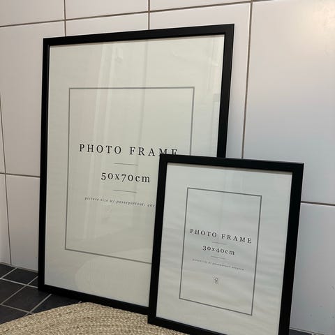 Ikean valkoiset valokuvakehykset lasilla. Koko kehyksen sisäosa 13x18 cm, valkoisella reunaosalla kuvan koko 9 x 14 cm. Yhteensä neljä kehystä 5 e.