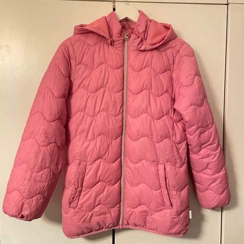 Name it kevytoopatakki koko 152 ja kunto oikein hyväkuntoinen. Pieni pistemmäinen tahra takana takissa ja etupuolella saumassa. On huomaamaton.