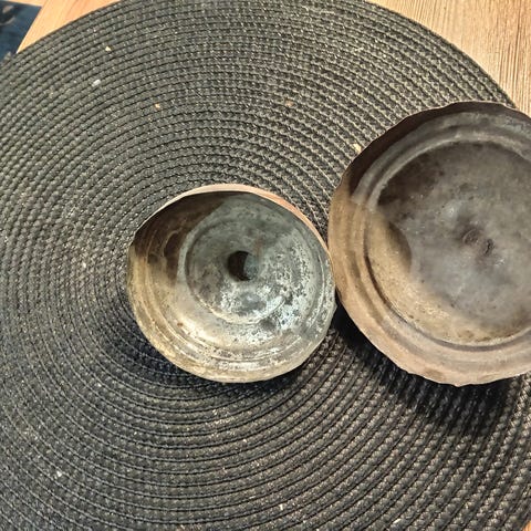 Vanha kuparinen kahvipannu, sepän tekemä ja vieläkin ehjä.