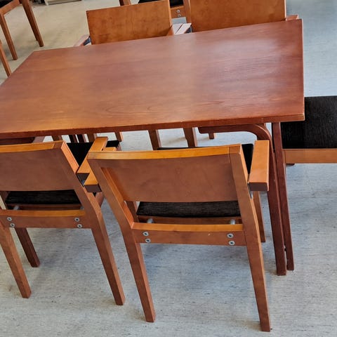 Tuolin istuinkorkeus 40cm, leveys 40cm, syvyys 50cm, nojakorkeus 82cm.