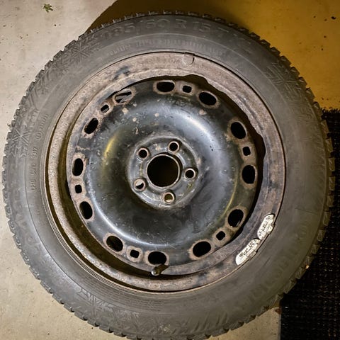 Yksi rengas ei pidä ilmaa sisällä. Nastoja hyvin jäljellä. 3v ollut ajossa