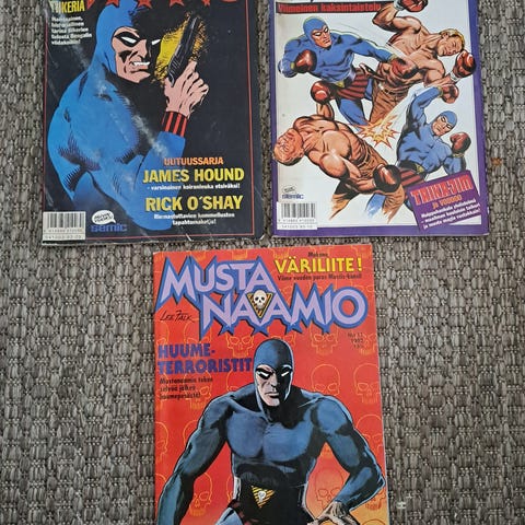 Myydään Mustanaamio sarjakuvia. Kuvissa olevat ja paljon muita, kysy jos joku tietty lehti kiinnostaa niin katsotaan löytyykö sitä. Myydään yhdessä tai erikseen,tarjoa hintaa.