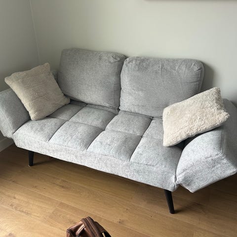 Harmaa vuodesohva, joka muuntuu helposti sängyksi. Sohvassa on tukeva runko ja pehmeä verhoilu, sopii monenlaiseen sisustukseen ja tilaan.