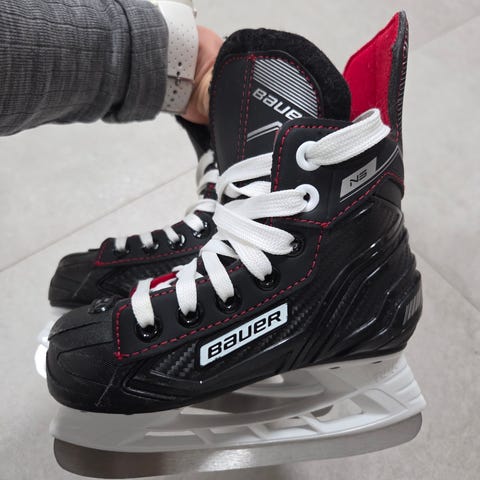 Muutaman kerran jäällä käytetyt laadukkaat luistimet. Terät erinomaisessa kunnossa ja teroitetut hyvin. Luistelu ei sitten ollutkaan lapsemme juttu. Koko 6, pohjallinen noin 25,5.