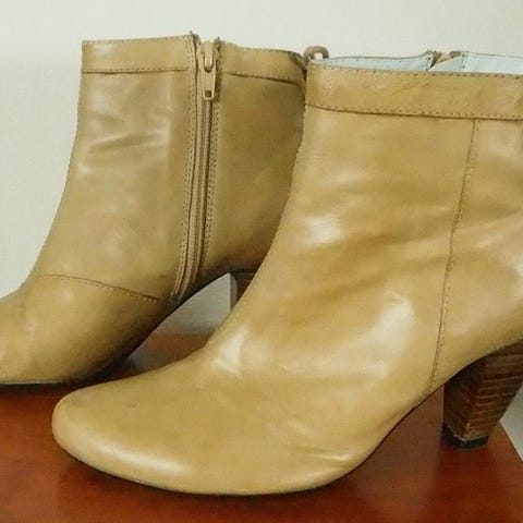 Upeat konjakin väriset venykenilkkurit . Päällinen nahkaa . Voin suihkuttaa kosteussuojan päälle . Hyväkuntoiset , ehjät ja siistit nilkkurit .