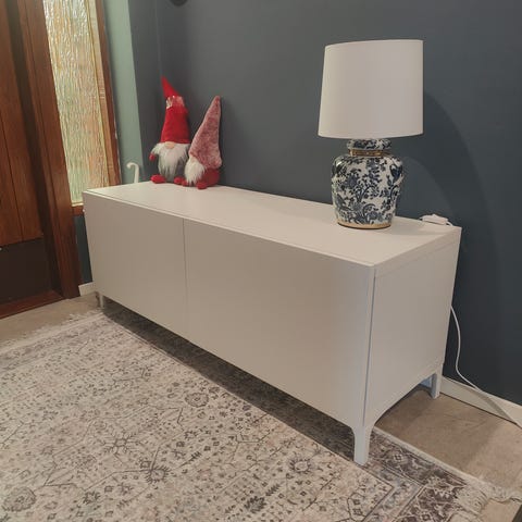 Myydään Ikean Bestå TV-taso / kaappi mattavalkoisilla Lappviken -ovilla. Hinta 40e.