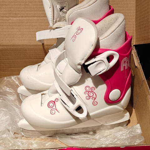 Iceskate Rookie 4 lasten luistimet, säädettävä koko 25-28. Värit pinkki ja valkoinen.