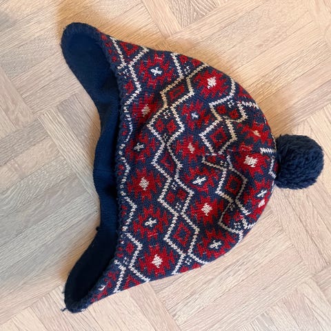 Polarn O. Pyret lasten sadehattu sinisenä, valmistettu polyesteristä. Koko one 54 eli 6-9 v., tarkoitettu pojille.