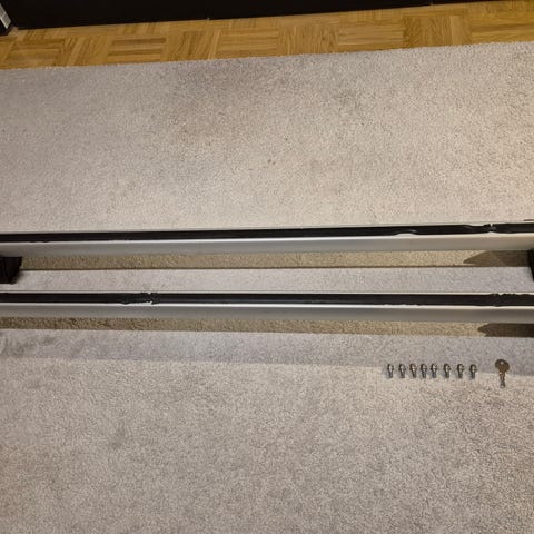 Alkuperäinen Skoda Yeti taakkateline. Kahdet avaimet ja 4 kpl:tta pultteja jotka ruuvataan kattokiskoon.