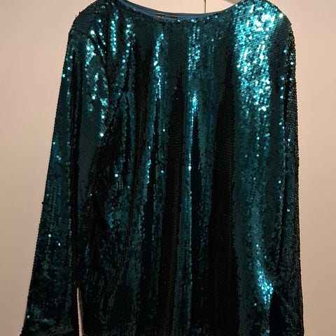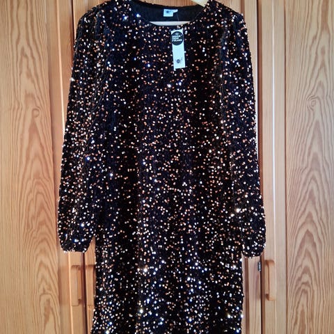 • Yksityiskohdat: Yläosassa runsaasti kimaltavia paljetteja, helman reunassa paljettikoristeet.