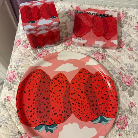 Marimekko Mansikkavuoret keittiöpyyhe UUSI