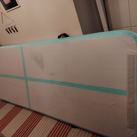 Ehjä Airtrack-ilmavolttirata. Koko 3 x 1 metriä. Mukaan tulee musta kantokassi ja paikkaussetti.