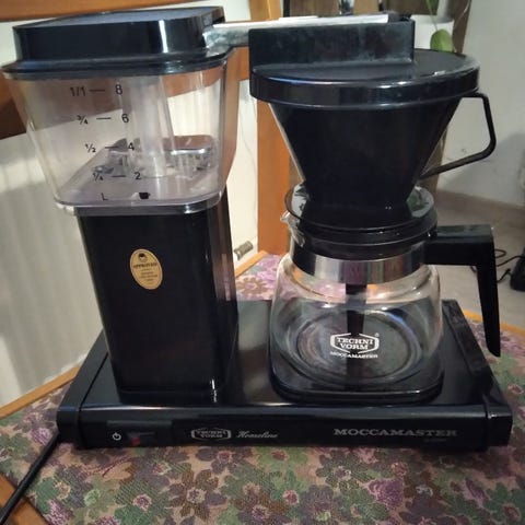 Kuvanmukainen Moccamaster suoraan käytöstä. Myyn pois, kun yhteenmuuton johdosta vähän kaikkia laitteita on kaksi. Oikein hyväkuntoinen laite.