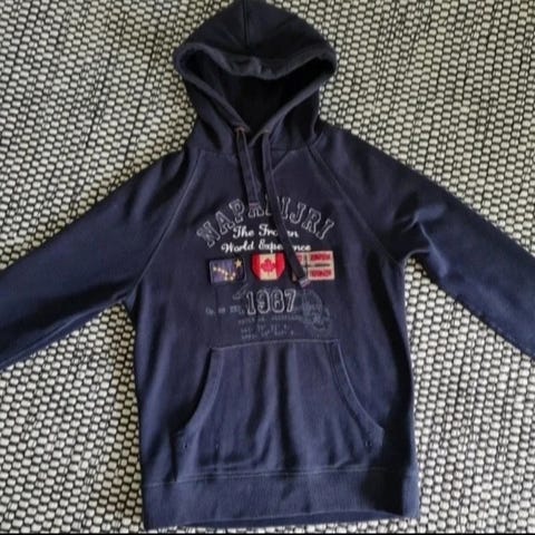 Kivan löysästi istuva M koon huppari. Tosi pehmeä, 95% puuvillaa 5% elastaania. Tumman sininen. Pituus 66cm leveys 59cm