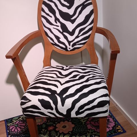 Tuoli on hyvässä kunnossa ilman näkyviä vaurioita. Istuinverhoilussa joko kuviointi tai käytön jälki.