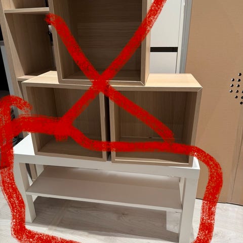Ikea Lack kevytrunkoinen taso, jossa kaksi säilytystasoa. Pintanaarmua.