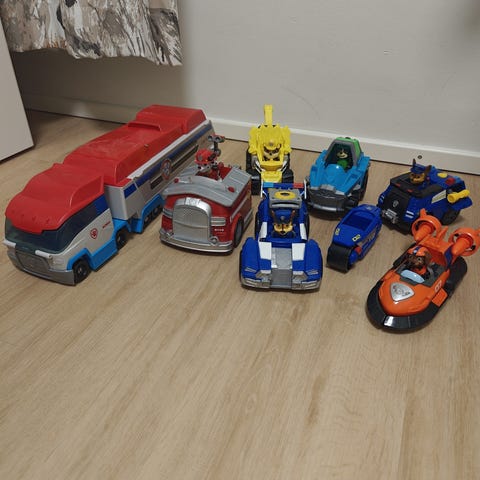 9 vehicles with figures, Tower, and couple extra figures. Valpas and Rolle have lights and sound