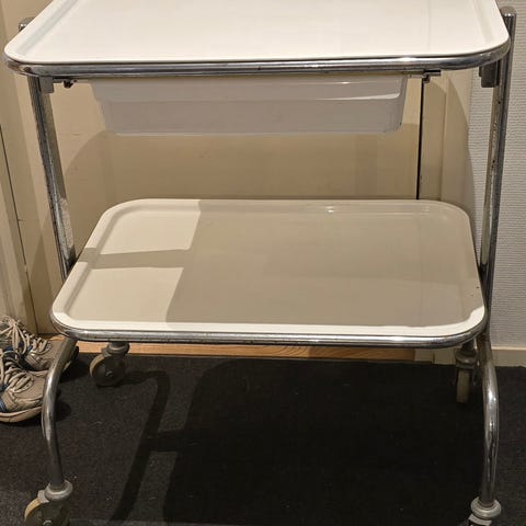 Merivaaran tutkimuspöytä, jonka kaikki säädöt toimivat. Nahkahihnat on vaihdettu uusiin mustiin. Kuvista poiketen ruskeita hihnoja ei ole ja makuualustan poikittaisia isoja hihnoja ei ole mukana. Kromi on antanut paikka paikoin periksi, mutta säädöt toimivat hyvin myös jalkatukien osalta. Tämä pöytä mahdollistaa tutkimustoiminnan molemmista päistä. Todellinen harvinaisuus. Vai oletko monta vastaavaa nähnyt? Vain nouto.