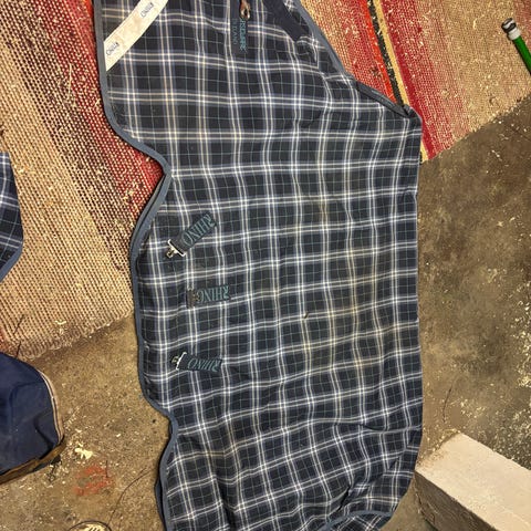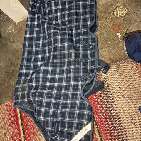 Horseware Rhino Plus Turnout Lite loimi + kaulakappale, koko 5'9"/125cm, kaulakappale medium koossa. Väri siniruudullinen. Hyvässä kunnossa ja ehjä pientä nirhaumaa ulkopinnassa (kuva 6). 0g vuori. Pesemätön