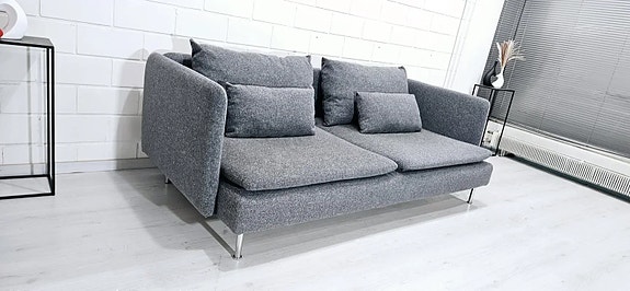 Sohva on hyvä kuntoinen. Päälliset juuri pesty. Päälliset ovat irrotettavat runko myöden. Mitat Leveys 280 cm, syvyys 98cm, divaani 150cm. Väri Isunda harmaa