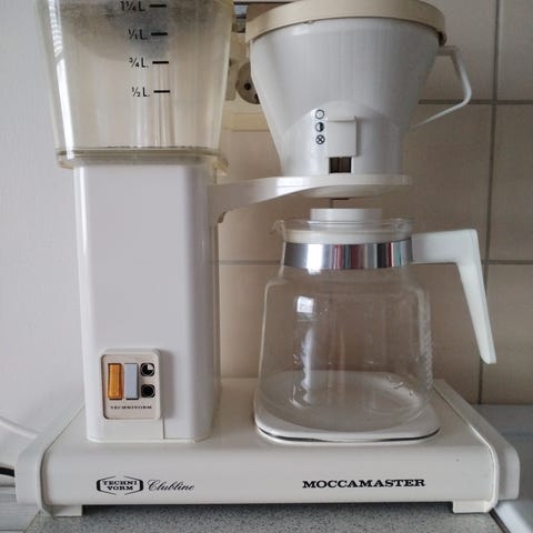 Moccamaster Cup-one kahvinkeitin valkoisena, suodatinpidikkeen. Laite on suunniteltu yhden kupin valmistukseen ja sopii kotikäyttöön.vähän käytetty.Aikakatkaisu