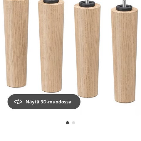Myydään erittäin hyväkuntoiset Ikea Brennåsen sängyn jalat 8 kpl. Ovat mustaksi petsattua massivipuuta, erittäin tukevat. Korkeus 20 cm. Myydään, koska sängyt siirtyi parvelle, ja jalat ovat sinne liian korkeat.