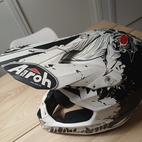 Airoh Twist 2.0 mopokypärä. Koko on M 57-58. Sisäosa hyvässä kunnossa ei tahroja. Sivussa pieni jälki (näkyy viimeisessä kuvassa)