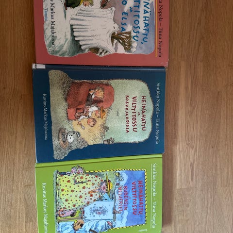 Heinähattu ja Vilttitossu lastenkirja. Voidaan myydä myös ilman toridiiliä.