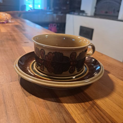 Myydään viisi Iittalan teekuppia. Väri ruskea. Yhdessä Iittalan tarra, muista pesun yhteydessä irronnut. Kupin korkeus 6 cm. Kaikki yhteensä 15€.