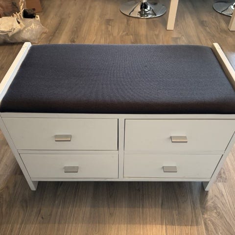 Hakusanat: istuin, säilytys, penkki, musta, huonekalut, moderni retro, käytetyt huonekalut, säilytyskorit