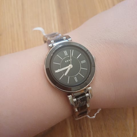 DKNY- merkkinen musta naisten kello. Ulkoisesti vain vähän merkkejä käytöstä. Ostettu n. 2015. Paristojen vaihto jää ostajalle. Samaan pakettiin mahdollisuus saada kaksi Guess-merkkistä hopeista naisten kelloa. Hinta 40€ tai kaikki kolme kelloa 90€.