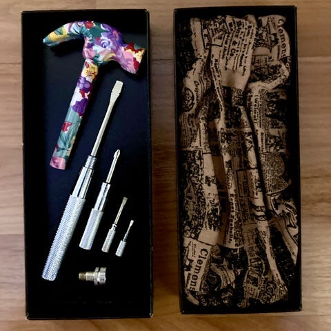 Pari vasaraa ja puristin. Stanley vasara ja joku muu.